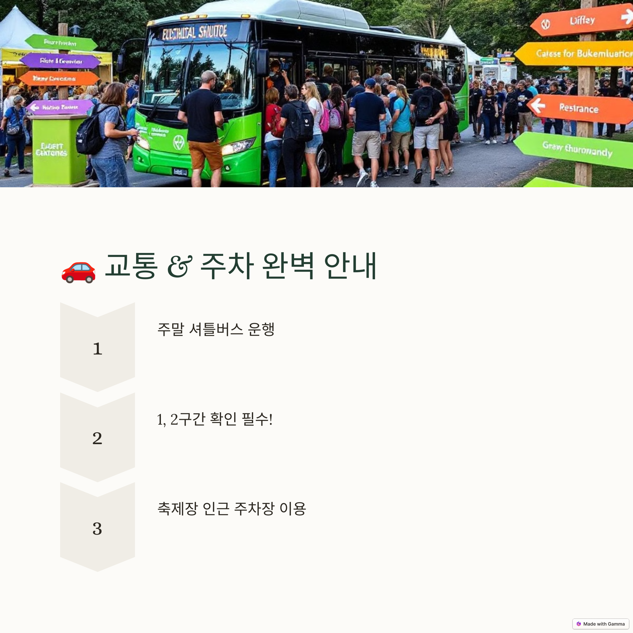 - 주말에는 주차장이 매우 혼잡, 대중교통 이용 추천